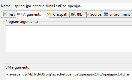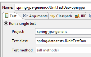 Ces modifications faites, l'exécution de la configuration [spring-jpa-generic-JUnitTestDao-openjpa] doit réussir.