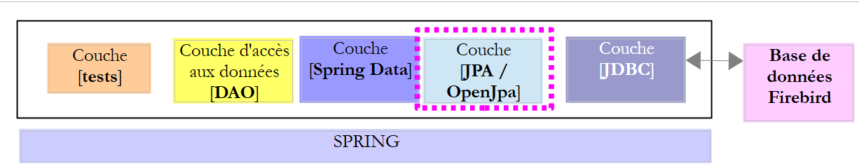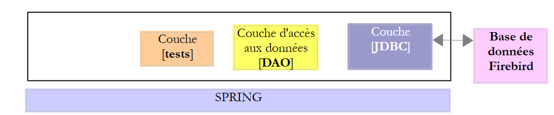 Le projet [firebird-config-jdbc] configure la couche [JDBC] de l'architecture de tests suivante :