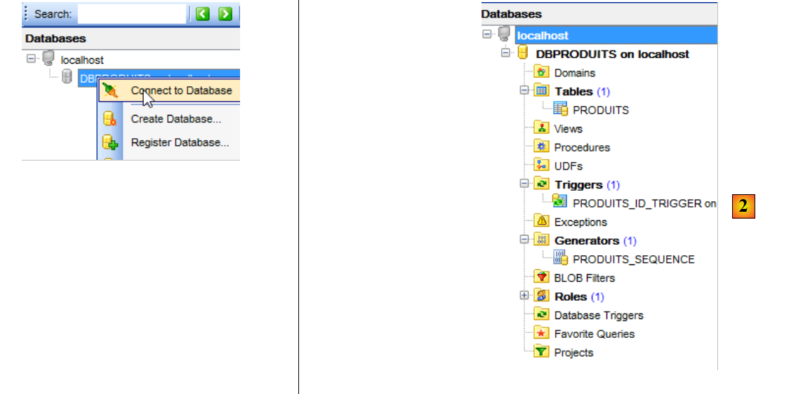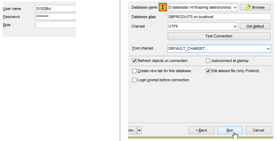 - en [1], fichier sera trouvé en [<exemples>\spring-database-config\firebird\databases\DBPRODUITS.GDB] ;