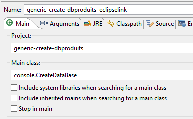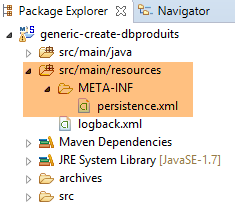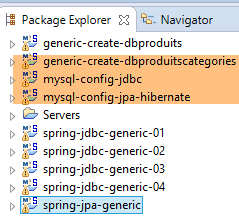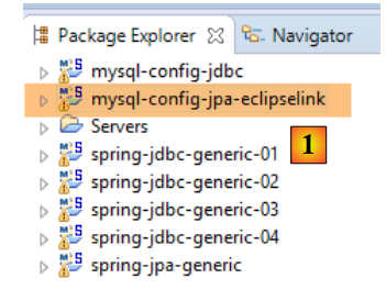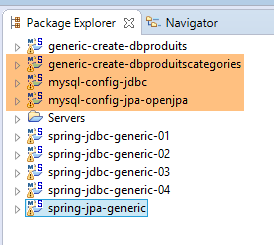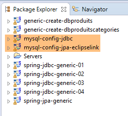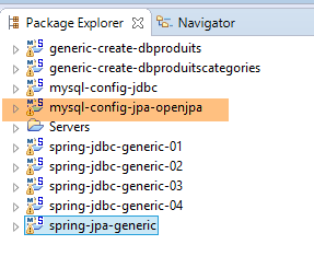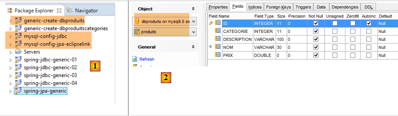 - en [1], les projets Eclipse. On sera dans une configuration MySQL / EclipseLink. Le projet de génération de la base [dbproduits] est [generic-create-dbproduits] ;