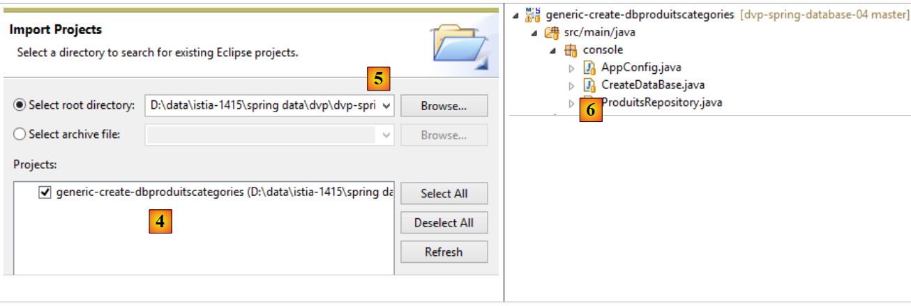 - en [4], on importe le projet [generic-create-dbproduitscategories] qu'on trouvera en [<exemples>/spring-database-generic/spring-jpa] [5] ;