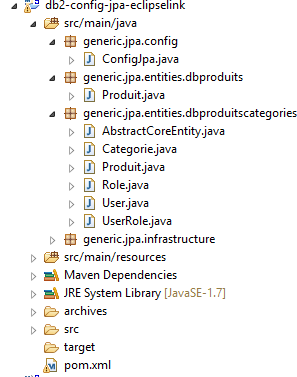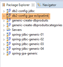 Le projet [db2-config-jpa-eclipselink] est analogue au projet [mysql-config-jpa-eclipselink] (paragraphe 7.3) avec les mêmes modifications qui ont présidé au portage du [mysql-config-jpa-openjpa] vers le projet [db2-config-jpa-openjpa] (paragraphe 12.3).