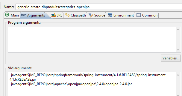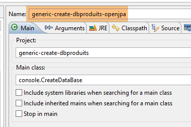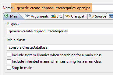 Nous créons maintenant les tables de la base [DBCAT] à partir d'Eclipse avec la configuration [generic-create-dbproduitscategories-openjpa] :