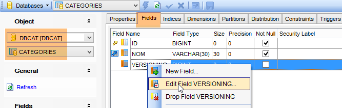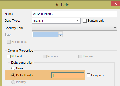 Il faut modifier la colonne [VERSIONING] des cinq tables afin qu'elles aient 1 comme valeur par défaut :