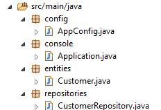 - ligne 18 : l'annotation [@EnableJpaRepositories] permet de désigner les dossiers où se trouvent les interfaces Spring Data [CrudRepository]. Ces interfaces vont devenir des composants Spring et être disponibles dans son contexte ;