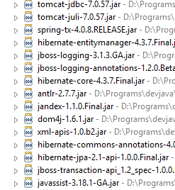 - d'autres appartiennent à l'écosystème Hibernate (hibernate, jboss) dont on utilise ici l'implémentation JPA ;