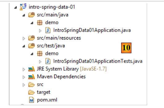 - ligne 9 : l'annotation [@SpringApplicationConfiguration] permet d'exploiter le fichier de configuration [IntroSpringData01Application]. La classe de test bénéficiera ainsi de tous les beans définis par ce fichier ;