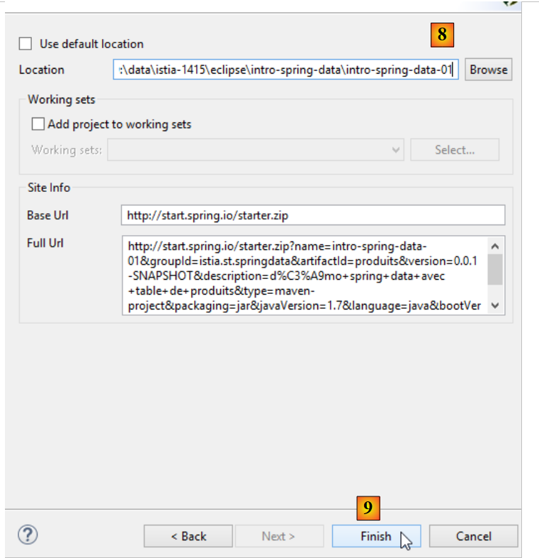 Pour créer un squelette de projet Spring Data, on peut procéder de la façon suivante :