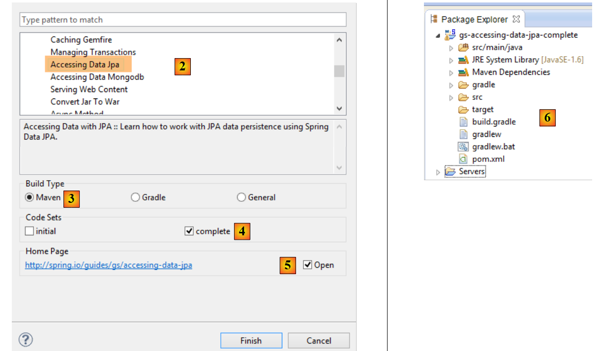 - en [2], on choisit le tutoriel [Accessing Data Jpa] qui montre comment accéder à une base de données avec Spring Data ;