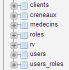 La base de données appelée par la suite [dbrdvmedecins] est une base de données MySQL5 avec les tables suivantes :