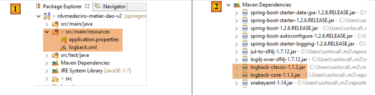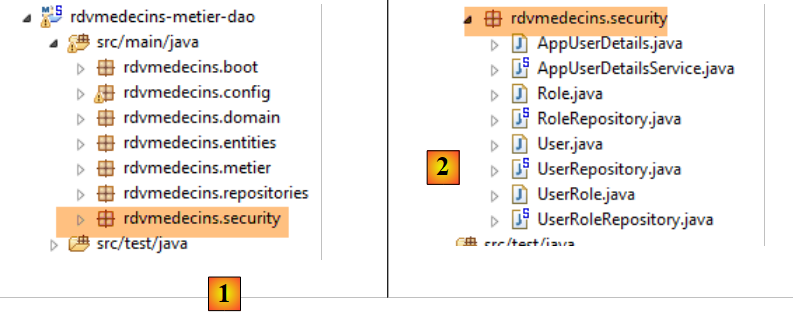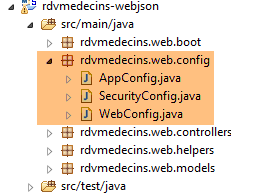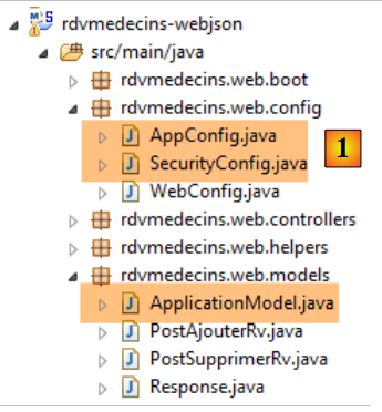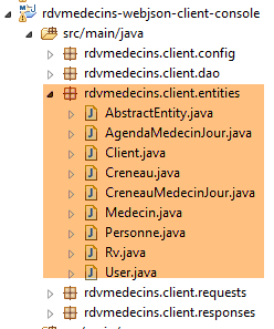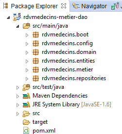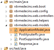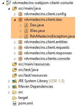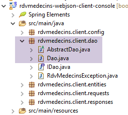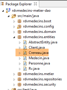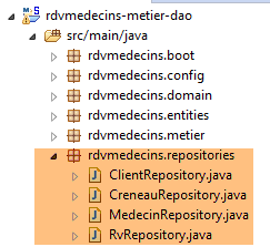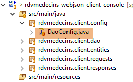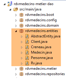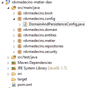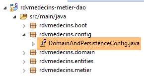 Les caractéristiques d'accès à la base de données sont enregistrées dans la classe [DomainAndPersistenceConfig] du projet [rdvmedecins-metier-dao] :
