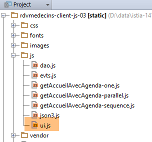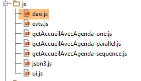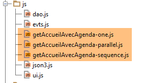 - ligne 27, le script [getAccueilAvecAgenda-sequence.js] est utilisé. En changeant le script de cette ligne on a trois comportements différents pour obtenir la page [accueil-avec-agenda] :