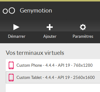 Lancez un émulateur [GenyMotion] pour une tablette Android (voir paragraphe 9.9) :