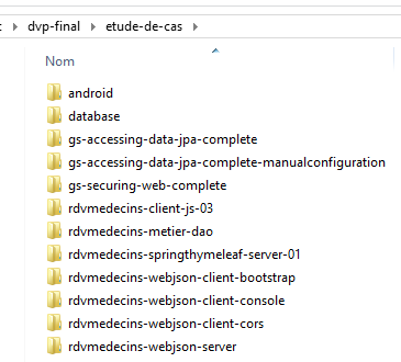 Le lecteur est invité à découvrir les fonctionnalités de l'application en la testant. Nous chargeons dans STS les projets Maven du dossier [etude-de-cas] :