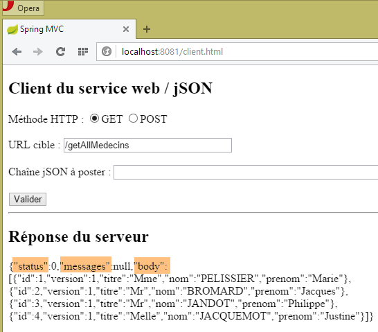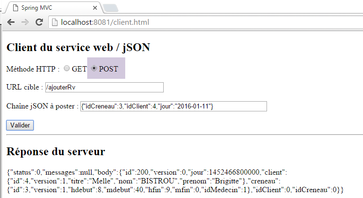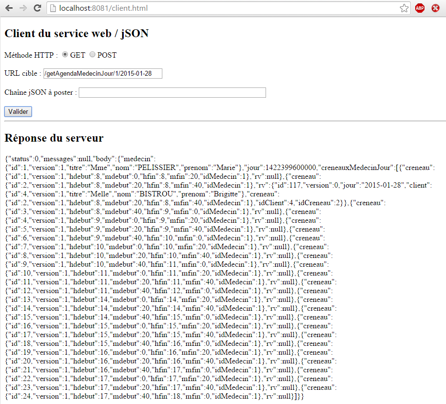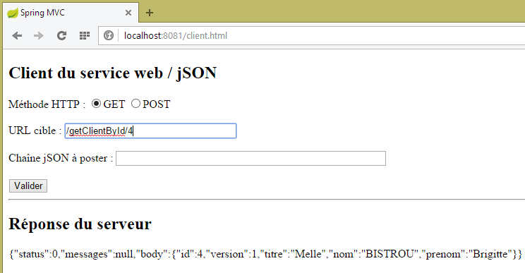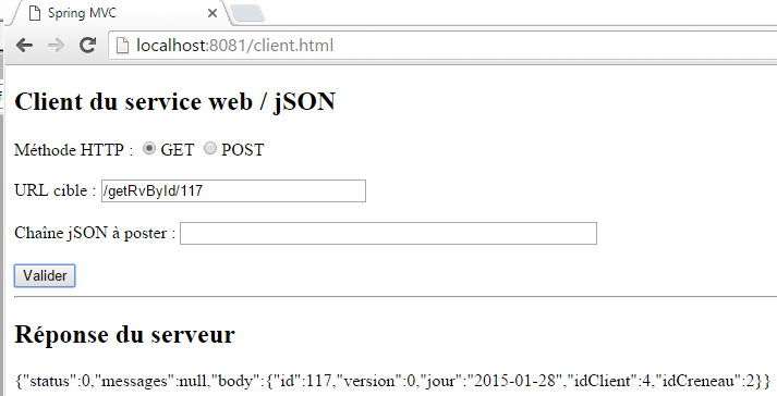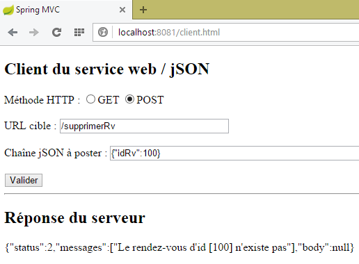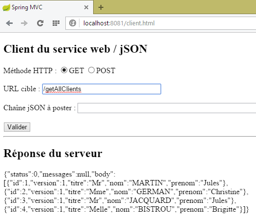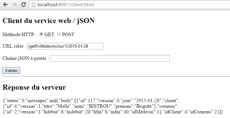 Nous laissons le lecteur faire les tests du client JS. Il doit être capable de reproduire les fonctionnalités décrites au paragraphe 8.6.3.