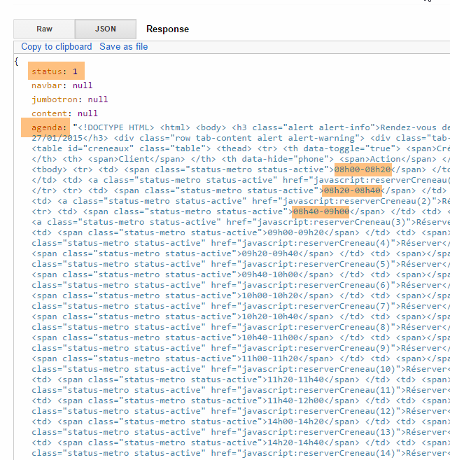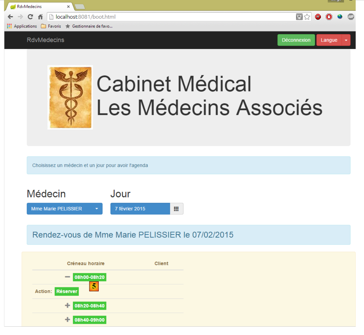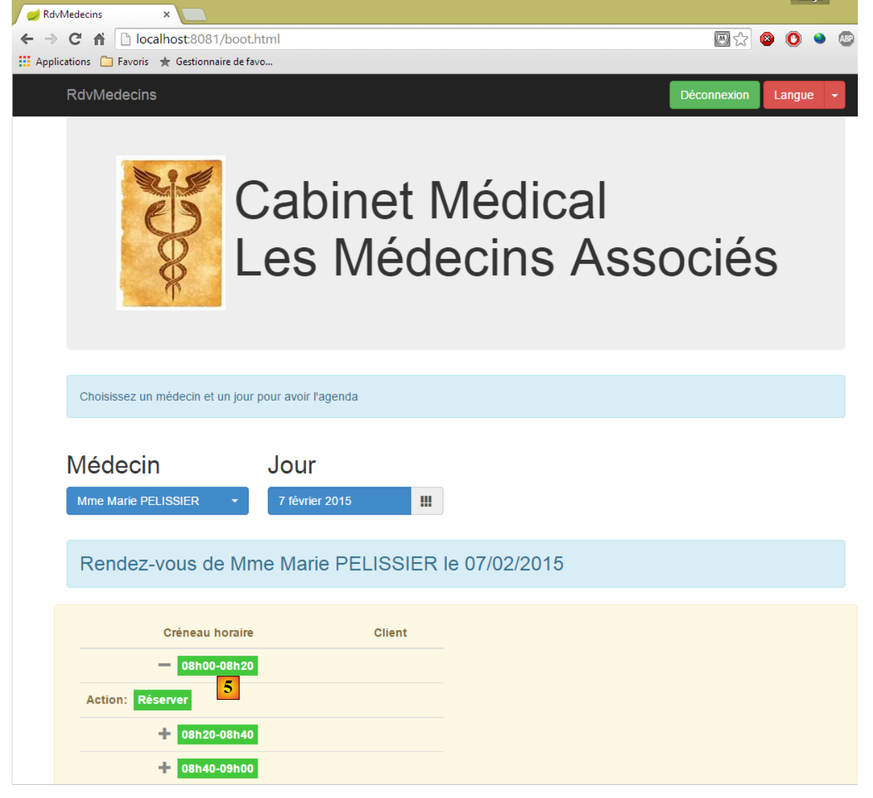 - une fois obtenu l'agenda du médecin, on peut réserver un créneau [5] ;