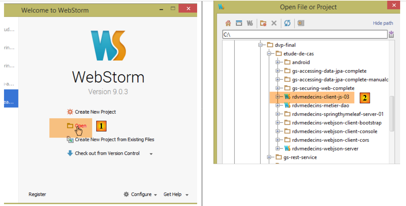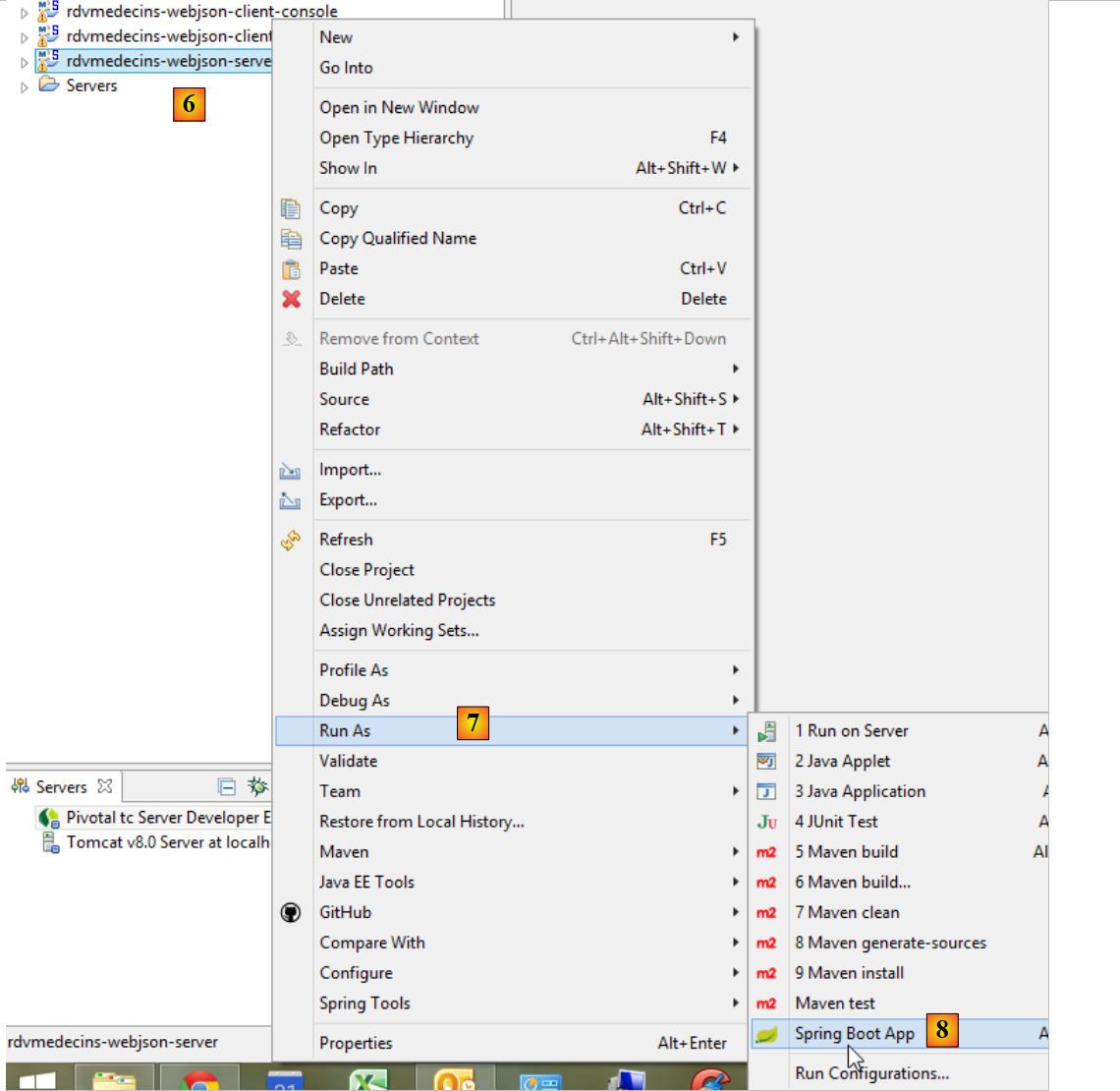 Ensuite, il nous faut lancer le serveur connecté à la base de données. C'est le projet [rdvmedecins-webjson-server]