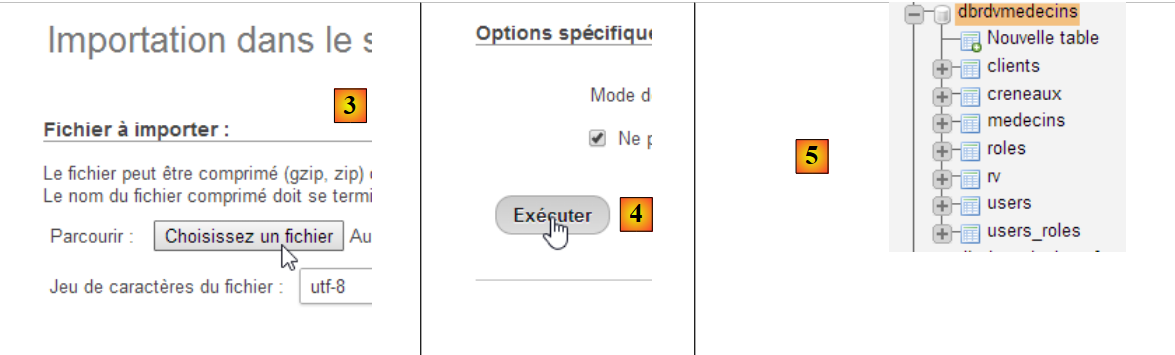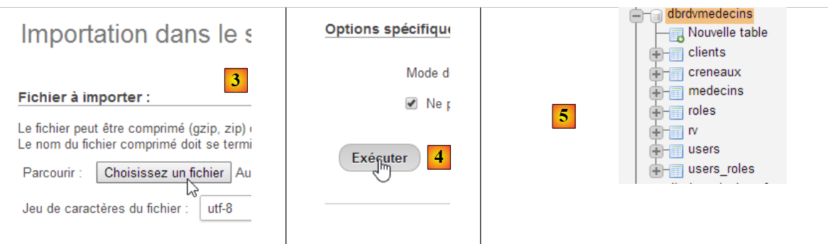 - en [3], on sélectionne le fichier [database/dbrdvmedecins.sql] ;