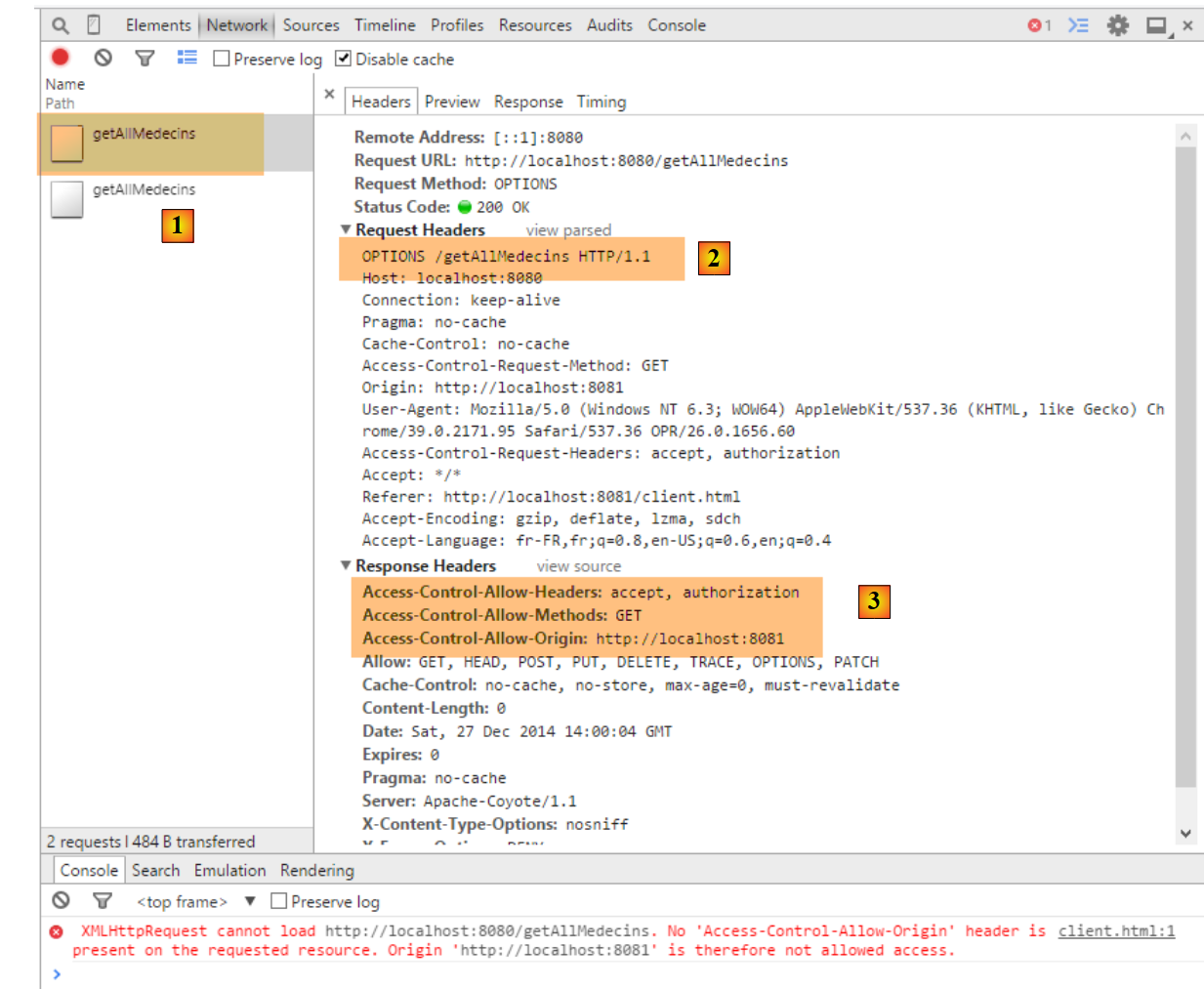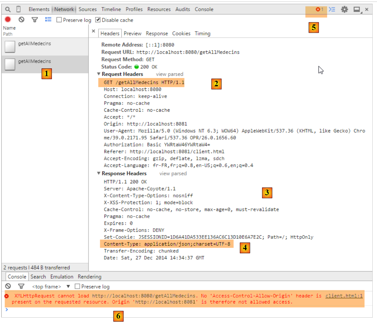 - en [5], on voit qu'un serveur embarqué par [Webstorm] a délivré la page [boot.html] à partir du port [63342]. C'est un point important à comprendre car cela veut dire que les scripts de la page [boot.html] vont faire des appels inter-domaines au serveur [Web1] qui lui travaille sur [localhost:8081]. Le navigateur qui a chargé [boot.html] sait qu'il l'a chargée à partir de [localhost:63342]. Il ne va donc pas accepter que cette page fasse des appels au site [localhost:8081] parce que ce n'est pas le même port. Il va donc mettre en oeuvre les appels inter-domaines décrits au paragraphe 8.4.14. Pour cette raison, il faut que l'application [Web1] soit configuré pour accepter ces appels inter-domaines. C'est dans le fichier [AppConfig] du serveur Spring / Thymeleaf que ça se décide :