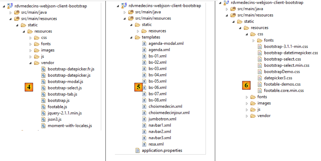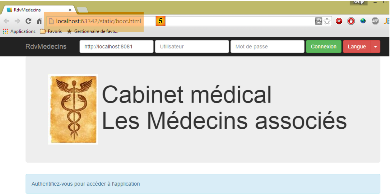 - en [6], l'URL du serveur [rdvmedecins-springthymeleaf-server] ;