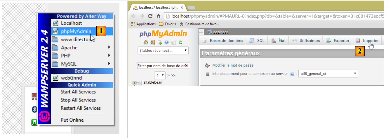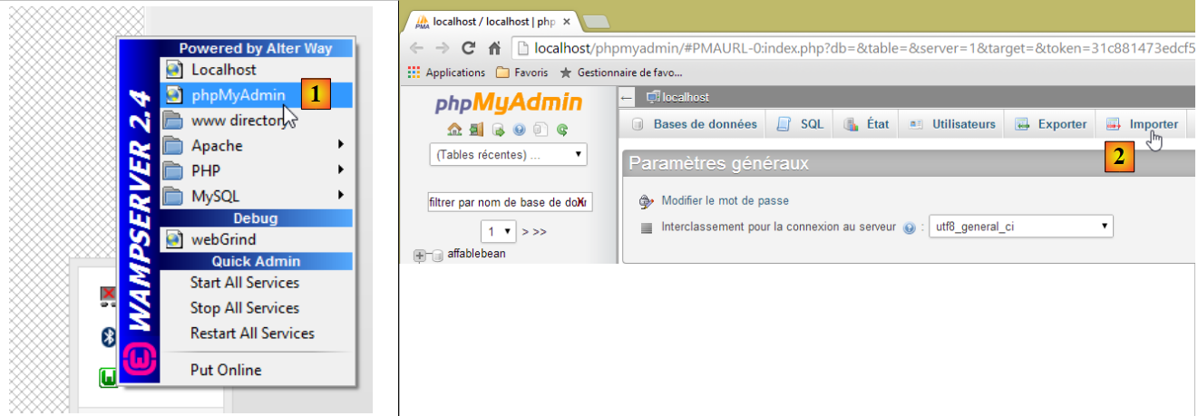 - en [1], on sélectionne l'outil [phpMyAdmin] de WampServer ;