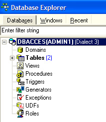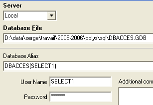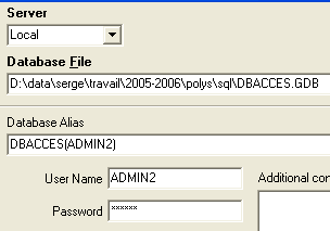 et enregistrons-la avec l'alias DBACCES (ADMIN1). L'utilisation d'alias permet d'ouvrir des connexions sur une même base en leur donnant des identifiants différents, ce qui permet de mieux les repérer dans l'explorateur de bases d'IBExpert. :