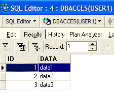 Avec la connexion DBACCES(USER1), ouvrons un nouvel éditeur SQL (Shift + F12) et tapons les commandes suivantes :