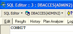 Revenons dans l'éditeur SQL(ADMIN1) pour faire le COMMIT :