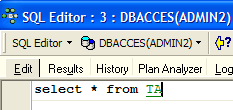 Positionnons-nous sur DBACCES(ADMIN2) et ouvrons un éditeur SQL (Shift + F12) :