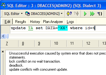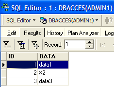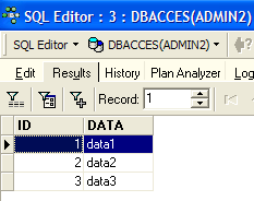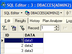 Illustrons ce point sur notre base [DBACCES]. Nous allons faire travailler simultanément les deux utilisateurs [ADMIN1] et [ADMIN2]. Plaçons-nous sur la connexion DBACCES(ADMIN1) et dans l'éditeur SQL d'ADMIN1, faisons les opérations suivantes :