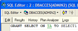 Cette fois-ci ADMIN2 peut consulter la table TA grâce au droit SELECT que lui a donné son propriétaire ADMIN1. Normalement c'est le seul droit qu'il a. Vérifions-le. Toujours dans l'éditeur SQL (ADMIN2) :