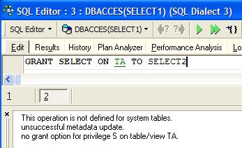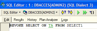 L'utilisateur SELECT1 a bien perdu son droit de lecture de la table TA. On notera que c'est ADMIN2 qui lui avait donné ce droit et c'est ADMIN2 qui le lui a retiré. Si ADMIN1 essaie de le lui retirer, aucune erreur n'est signalée mais on peut constater ensuite que SELECT1 a gardé son droit SELECT.