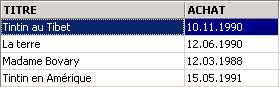 Cette table servira à enregistrer les livres achetés par une bibliothèque. La signification des champs est la suivante :