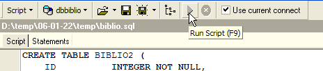 Rejouons ce script à l'intérieur de Firebird pour créer une table BIBLIO2 qui sera un clône de la table BIBLIO. Utillisons pour cela [Script Executive] (Ctrl-F12) :