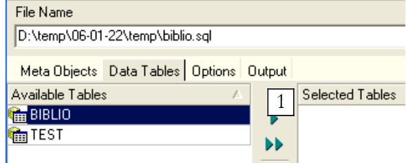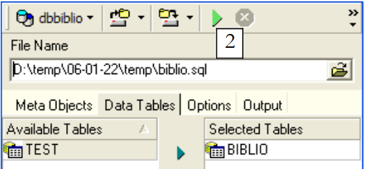 Si nous nous arrêtons là, seule la structure de la table [BIBLIO] sera exportée. Pour exporter son contenu, il nous faut utiliser l'onglet [Data Tables] :