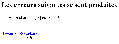 - la balise <html:errors> affiche la liste d'erreurs que le contrôleur Struts lui tansmet.