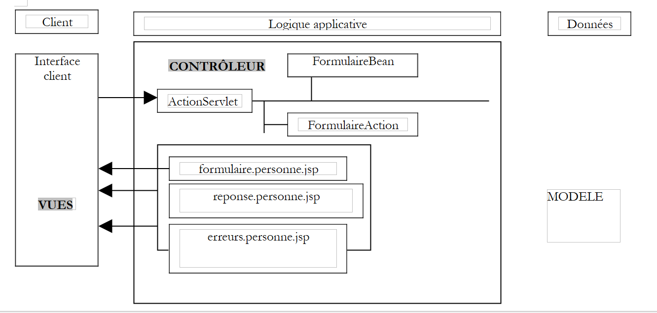 - de trois pages JSP : formulaire.personne.jsp, reponse.personne.jsp, erreurs.personne.jsp