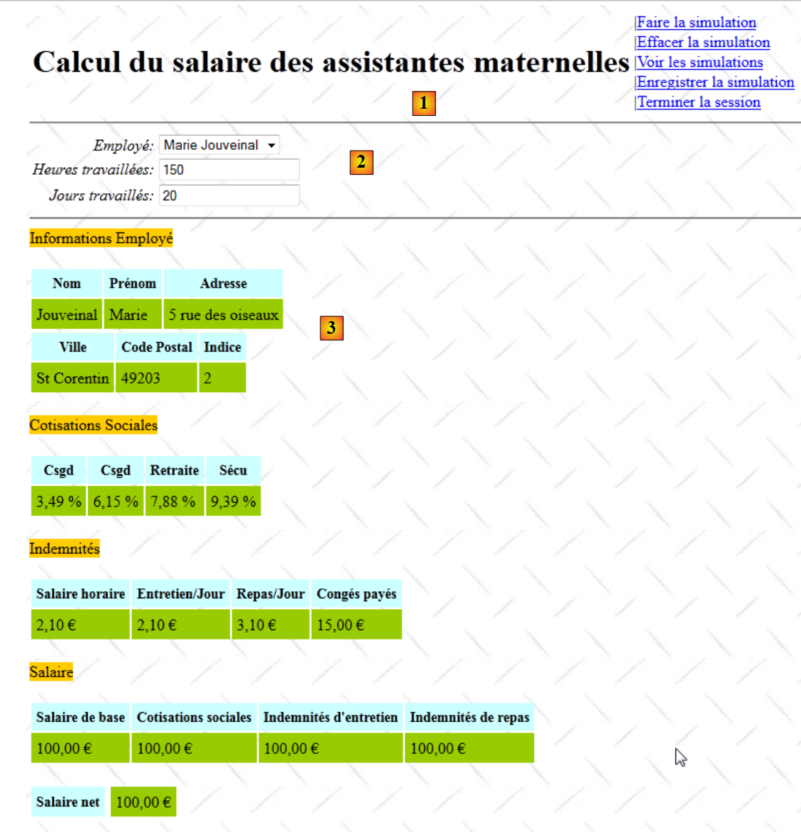 - en [2], on retrouve le formulaire de saisie vide. On demande à voir les simulations.