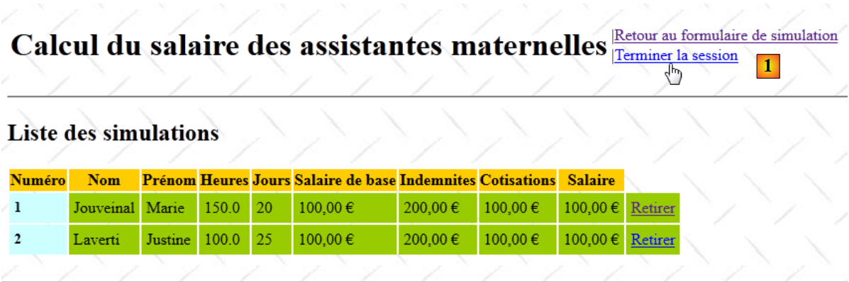 Le rôle de l'action [Terminer] est de vider la session courante de ses attributs.