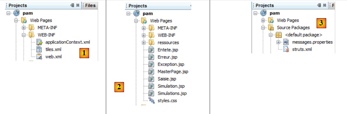 - en [4] : les codes source de l'application. Les actions Struts sont dans le package [web.actions].