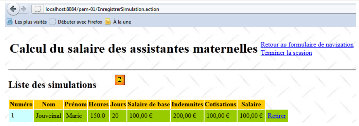 - lignes 2-5 : après exécution de la méthode [Terminer].execute, il y aura redirection sur la vue initiale de saisie. C'est ce qui explique l'écran n° 2.