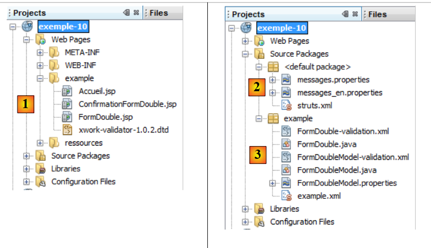 - en [2], le fichier des messages [messages.properties] et le fichier de configuration principal de Struts