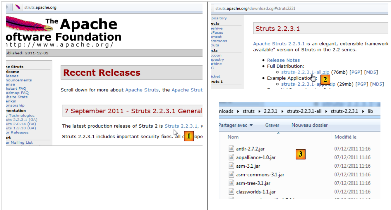 - la version 2.2.3 de Struts 2 disponible à l'URL [http://struts.apache.org/]