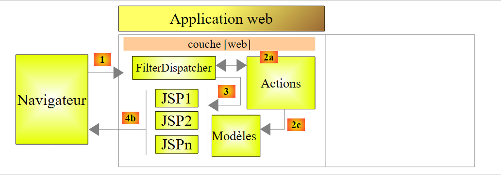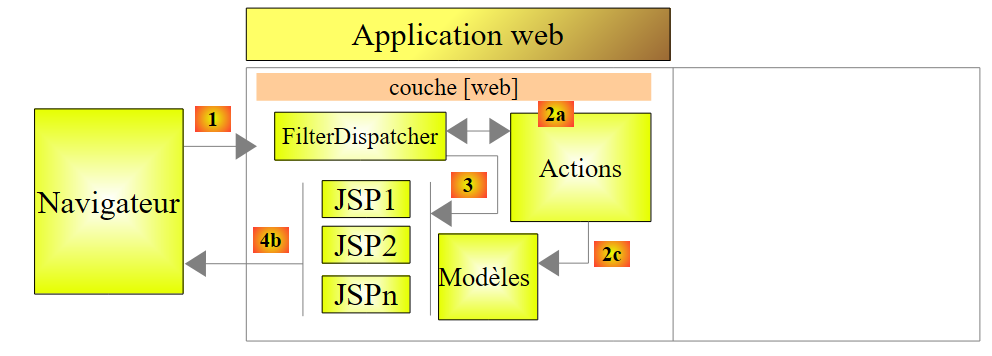 La plupart de nos exemples seront réduits à la seule couche web implémentée avec Struts 2 :