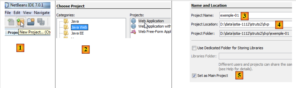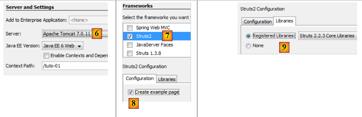 - en [7], on indique qu'on va travailler avec le framework Struts 2. C'est l'installation du plugin pour Struts 2 qui nous donne cette possibilité. Sans le plugin, le framework Struts 2 ne nous est pas proposé.