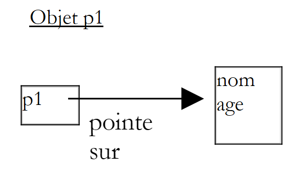 on fait appel à la méthode initialise de l'objet référencé par p1. Or cet objet n'existe pas encore et le compilateur signalera l'erreur. Pour que p1 référence un objet, il faut écrire :