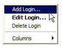 - cliquons droit sur la zone des logins et ajoutons un nouveau login :