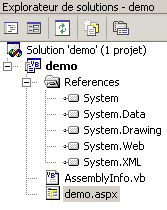 - la page [demo.aspx] est désormais reconnue comme une page web [.aspx] avec un code [.aspx.vb] associé.