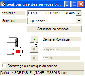 nom du serveur MSDE auquel on se connecte | |