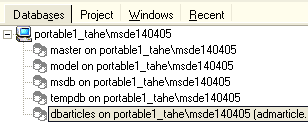 Le serveur MSDE apparaît alors dans l'explorateur de bases :